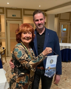Pictured above President Uschi exchanges banners with Gero v. Langsdorff from the Rotary Club of Muhlacker- Enzkreis, Germany.
